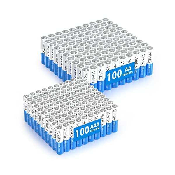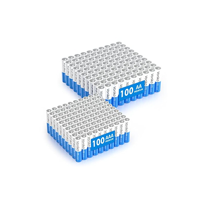 VONIKO - Premium Alkaline Battery - AA and AAA 200-Count Combo Pack Batteries, 100-Count Each, 10-Year Shelf Life, Recloseable Packaging