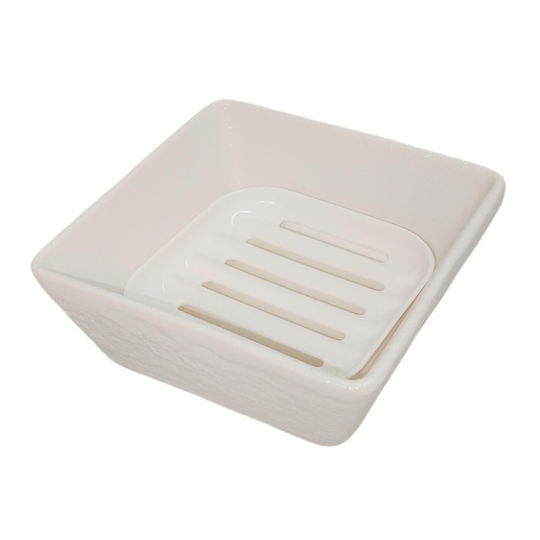 Vonpri Ceramic Soap Dish, Square Soap Holder Container Soap Saver for Handmade Bar Bathroom Shower Kitchen Minimalist Style (Matt White)