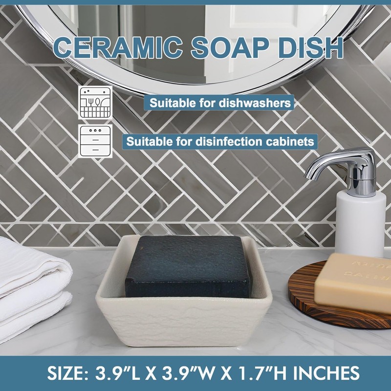- Sleek & Space-Saving Design: Compact yet stylish, this ceramic soap container features a minimalist stone-textured finish that blends seamlessly with modern decor. Its slim profile saves space while adding a touch of sophistication as a functional decor piece.