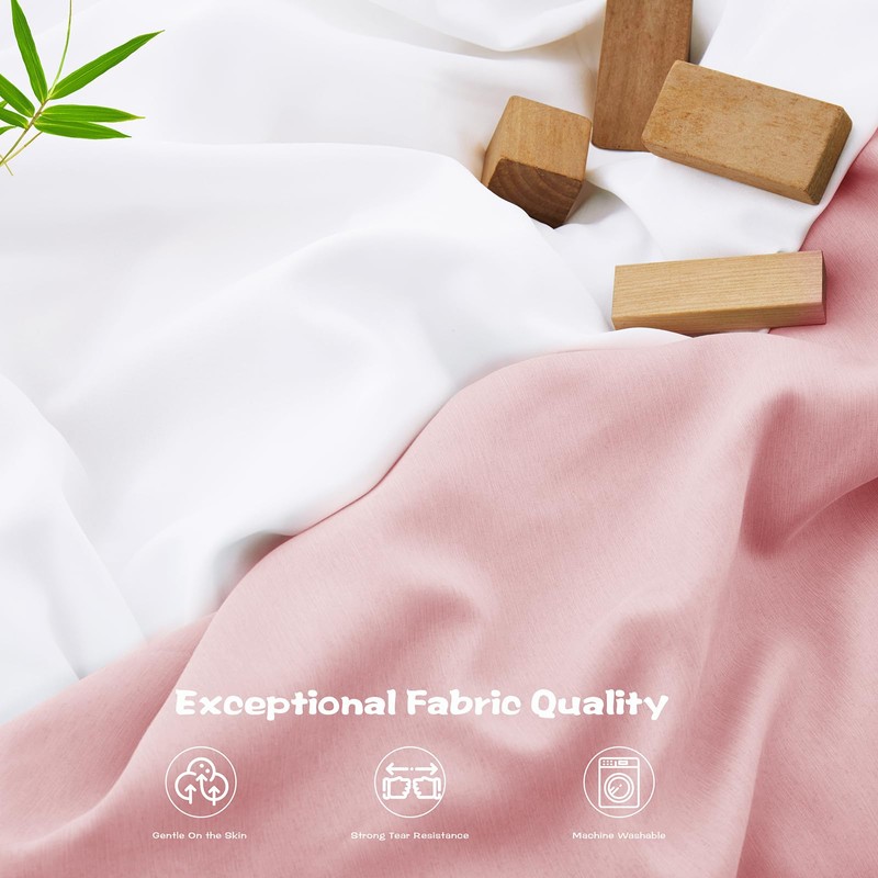 Vonty 2 Pack Breathable Fitted Crib Sheet for Boys and Girls - Rayon Derived from Bamboo, White & Pink Crib Sheets Neutral Crib Mattress Sheet Organic Crib Sheets for Baby(52" x 28")