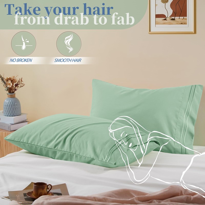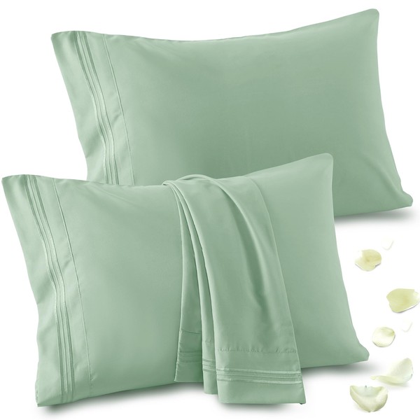 Vonty 2 Pack Queen Pillow Cases - 20x30 Inch, 1800 Thread Count Microfiber Pillowcases Queen Size Sage Green Pillow Cases Luxury & Soft Embroidered Bed Pillow Covers with Envelope Closure