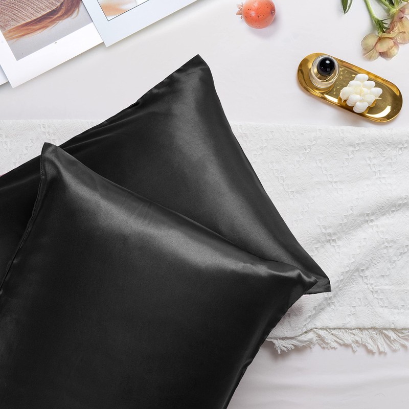 • YEAR ROUND COMFORT - Enjoy throughout the year! Cool in the summer and warm in the winter. Experience the luxury of our exquisite satin pillow cases. Envelop closure (no zipper) design, wrinkle resistant, comfort and better fit. The envelope closure end design prevents your pillows escaping from pillowcase during your sweet dream.
