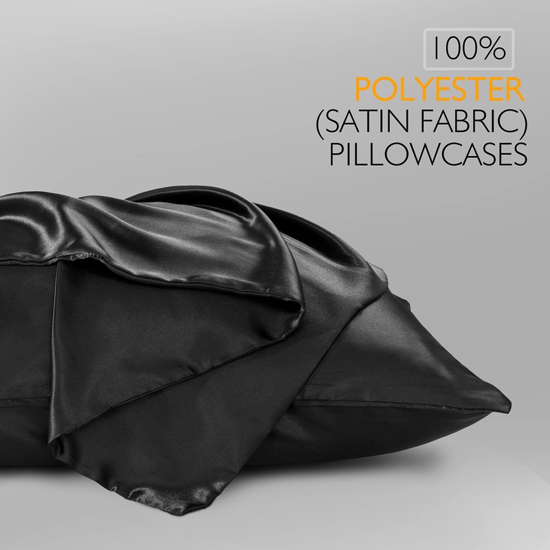 Vonty 2Pcs King Satin Pillowcases - 20x40 Pillow Cases, Black Pillow Cases fo...
