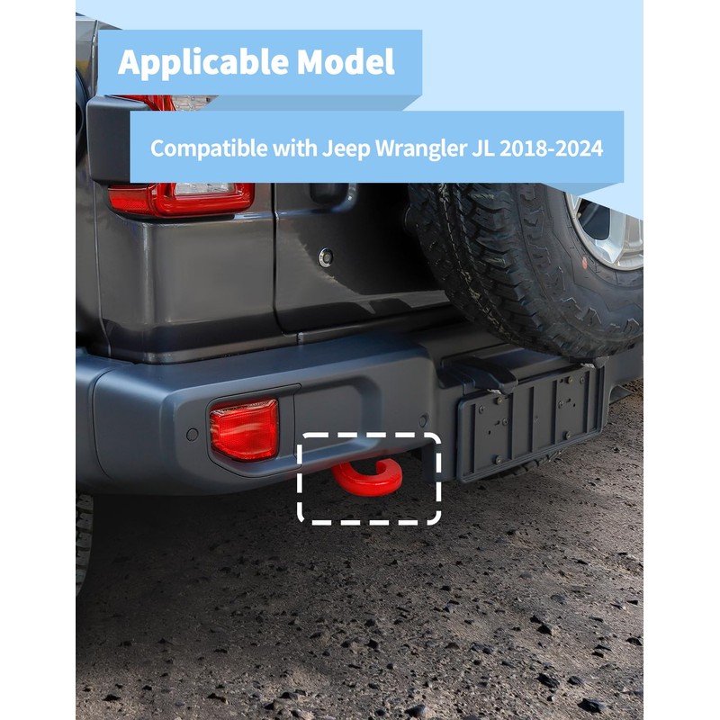 Voodonala JL Original Rear Tow Hook Kit Trailer Hitch Compatible with Jeep Wrangler JL JLU Accessories 2018-2025, Red