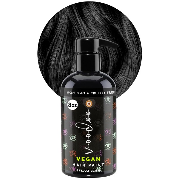 VOODOO Black Hair Dye (Mystery Black) 8 Oz | Vegan & Cruelty-Free Black Hair Dye | Ammonia, Sulfate & Paraben-Free | Vivid & Bright Intermixable Temporary Hair Color | DIY Hair Paint (8 Oz)