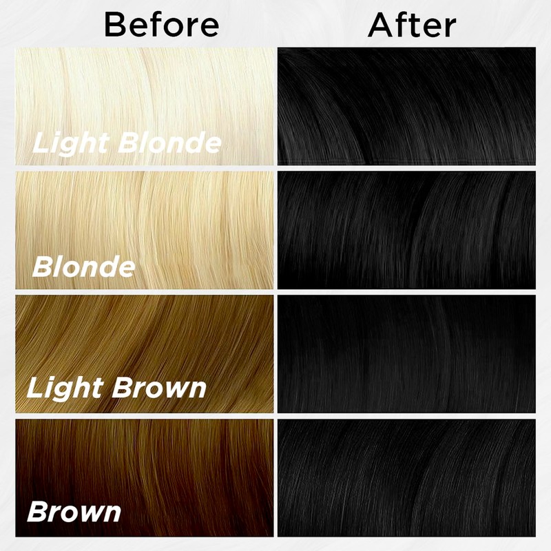 - ✔️ MYSTERY BLACK HAIR DYE — Shrouded in the mystical aura, the black hair dye brews the fanciest darkest hair. Let the mysterious echo unfold as the rich ebony shade casts a magic. Perfect for transforming your locks from blonde or brunette in black hues with the temporary black hair dye. Let the rich pigment take over your tresses with the rich, velvety, and non-drippy hair tone