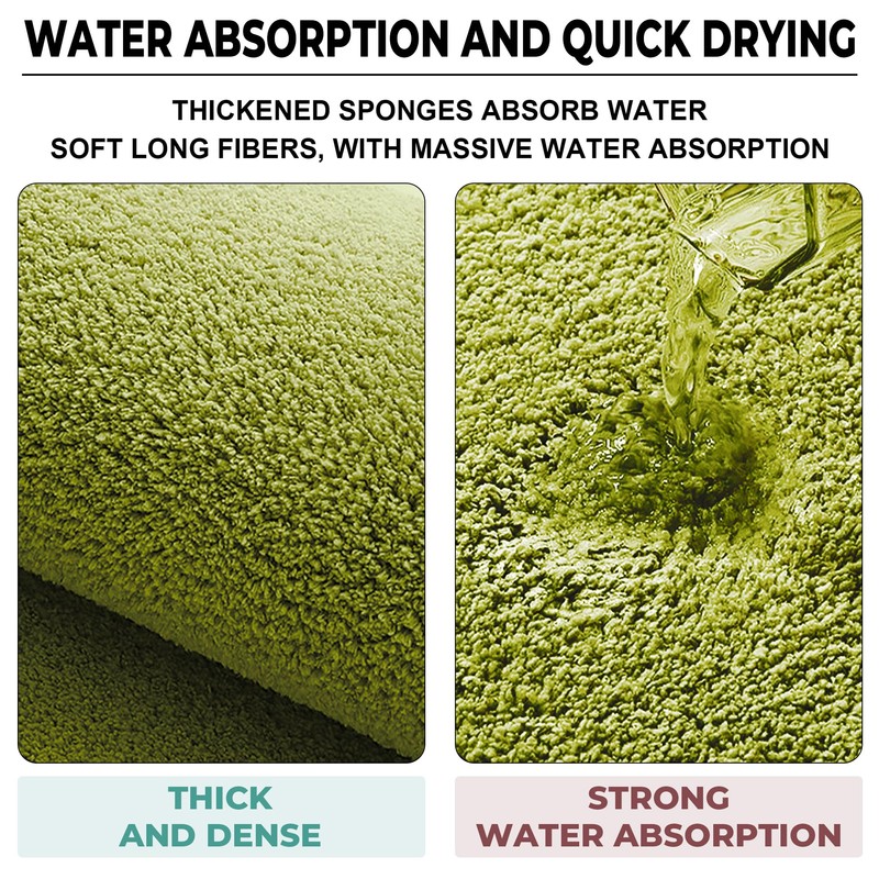 - Absorbent and Non Slip: When you step out of the shower or bathtub, the non slip bathroom rug absorbs moisture well and keeps your feet dry and warm. Non slip rubber backing keeps the quick drying bath mat firmly in place on the floor. Please note: The lime green bath mats for bathroom must be placed on a clean, dry, level floor.