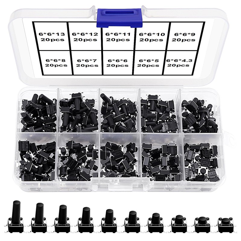 - Enough Quantity:10 kinds of tact switch, total 200 pieces.