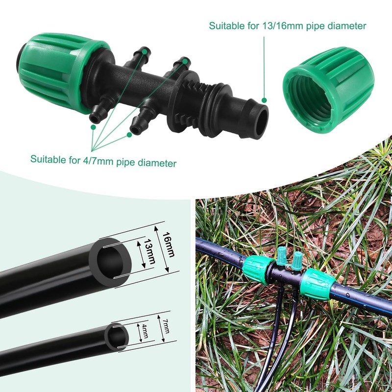 - HOSE CONNECTOR Suitable for irrigation pipes with 1/2" to 1/4" (13mm inner diameter / 16mm outer diameter to 4mm inner diameter / 7mm outer diameter).