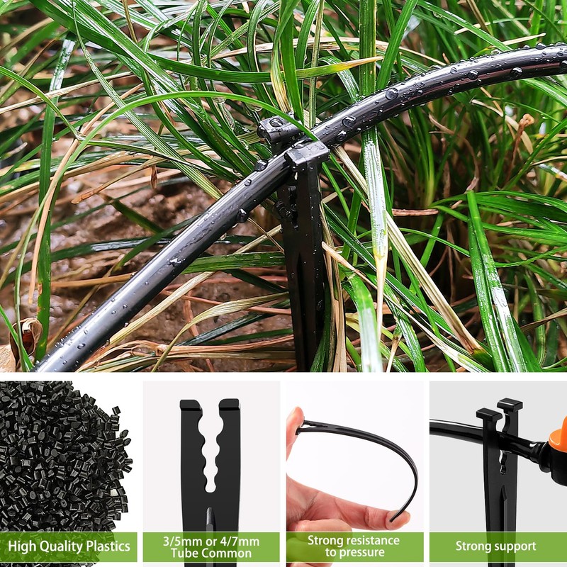 - Easy to use: insert the stake into the ground and hold the dripper up. If the soil is hard, you should moisten and loosen the soil before inserting. Then press the fixed rod around the stake to increase stability.