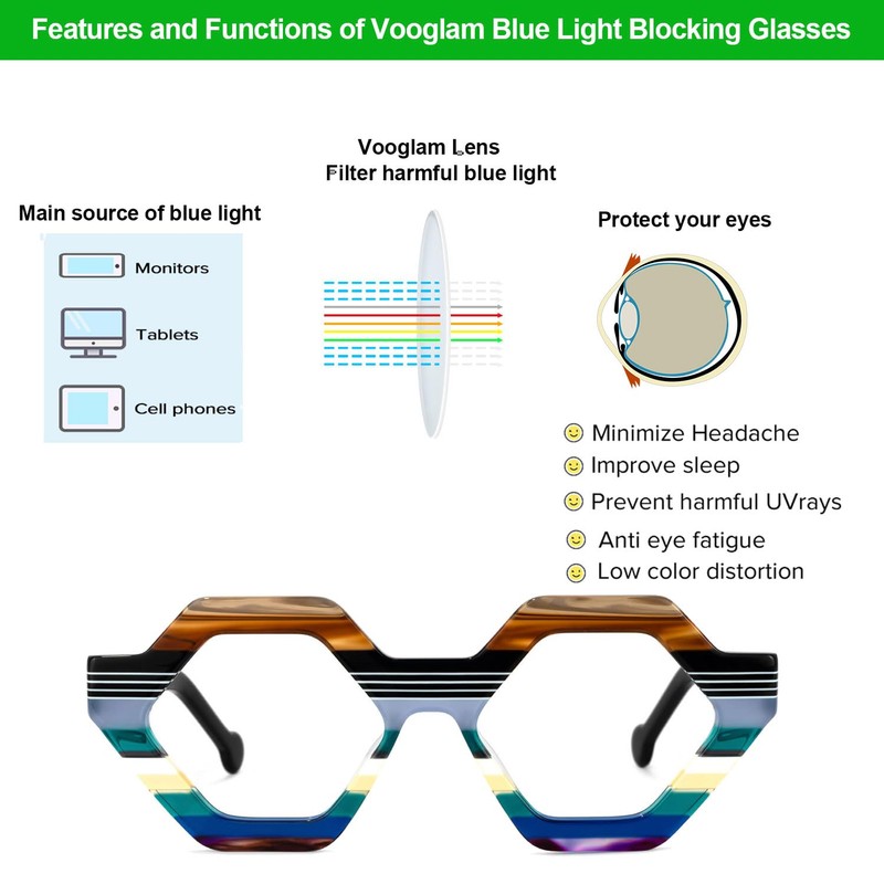 ▶ Vooglam glasses are specially designed to filter out harmful blue light.