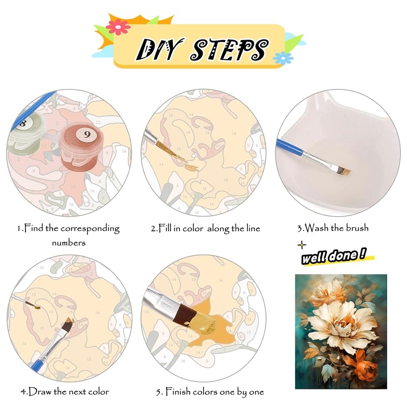 - Professional paint by numbers: this set of paint by numbers adults uses high-quality oil canvas with coloured base. The numbers are clearly visible, easy to colour, moisture resistant and fading and have a long service life. The pigment is a natural acrylic paint with bright colours, easy to colour and strong coverage.