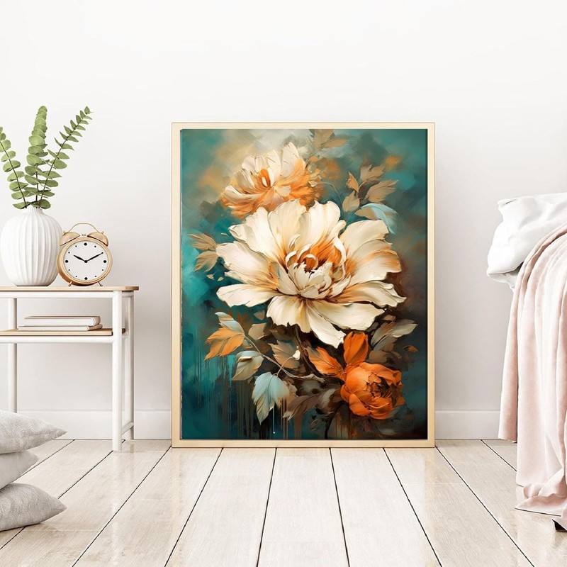 vooiceofco Paint by Numbers Adult Landscape Wrinkle-Free Canvas with 3 Brushes Acrylic Pigment DIY Oil Painting Canvas Set 40 x 50 cm Frameless White Peony