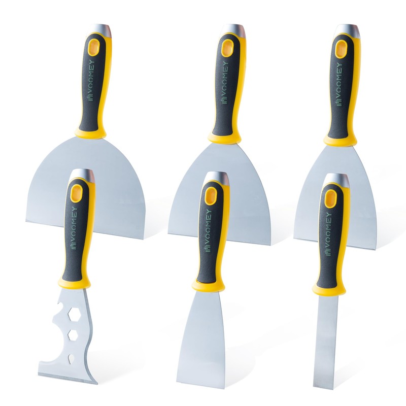 VOOMEY Putty Knife Set, Drywall Knife,6PCS 420 Stainless Steel Paint Scraper Tools, Metal Scraper, Used for Renovating Old Walls, Applying Putty, Removing Wallpaper, Etc