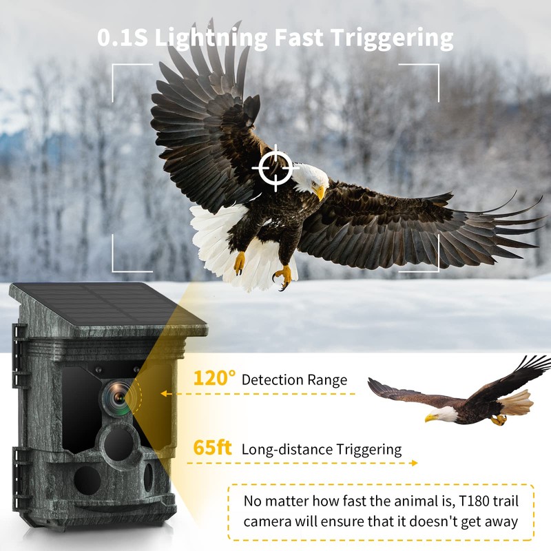 VOOPEAK Trail Camera Solar Powered 46MP 4K Native 30FPS, WiFi Bluetooth Hunting Game Camera with 120°Wide-Angle Motion Activated Night Vision 0.1s Trigger Time IP66 Waterproof for Wildlife Monitoring