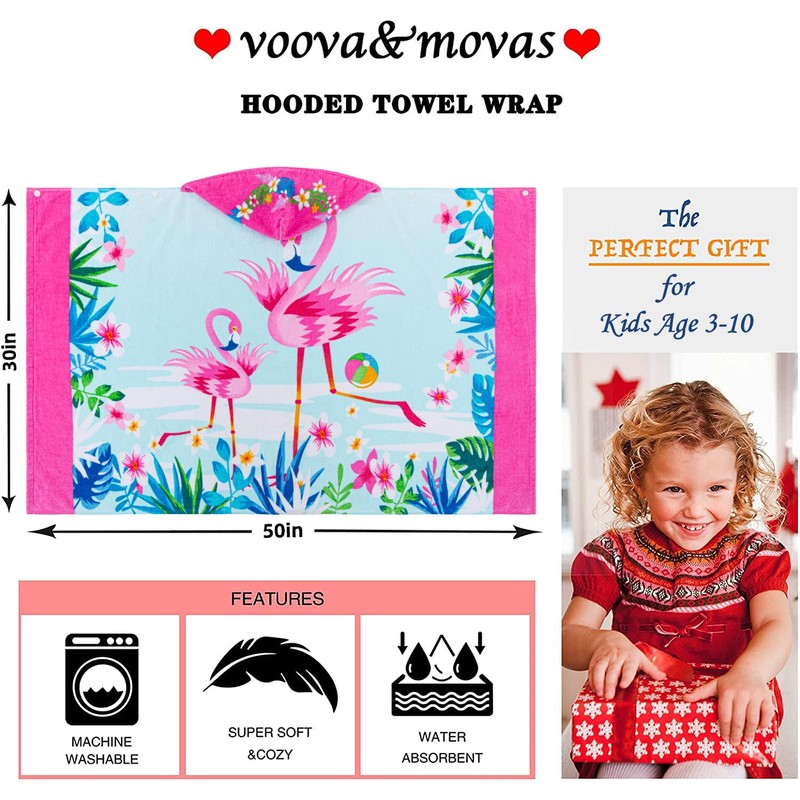 VOOVA & MOVAS - Toallas con Capucha Flamingo Algodón Suave y Grueso para niños de 3 a 10 años | Toalla Envolvente Absorbente, Perfecta para Playa, Piscina, baño, natación | Flamenco Tropical