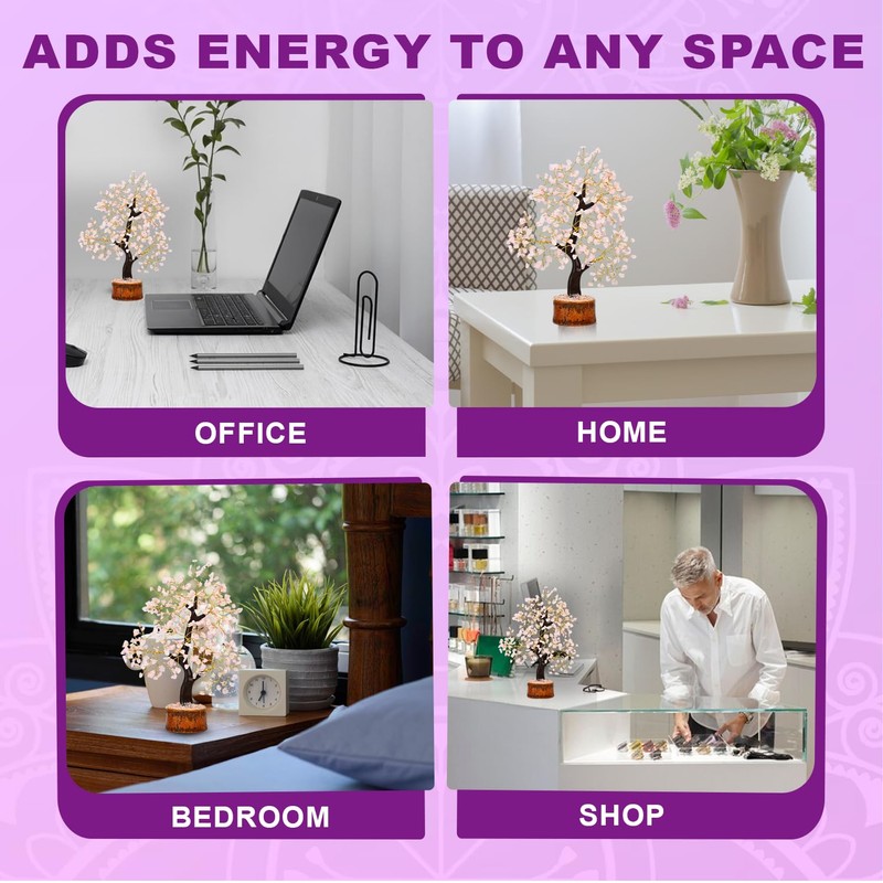 - ✅ ROSE QUARTZ FENG SHUI TREE :The Rose Quartz Crystal Tree symbolizes love, harmony, and emotional healing. Often used in Feng Shui, it attracts positive energy and promotes inner peace. A thoughtful gift for loved ones or a calming addition to your home or office décor.