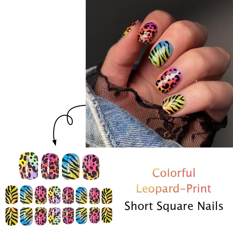 - Has Many Uses:Colorful pattern false nails , short square shape . Perfect for nails salon, DIY home nails art,used on wedding ,prom party ,dating.It is perfect gift for girlfriends, wives, women