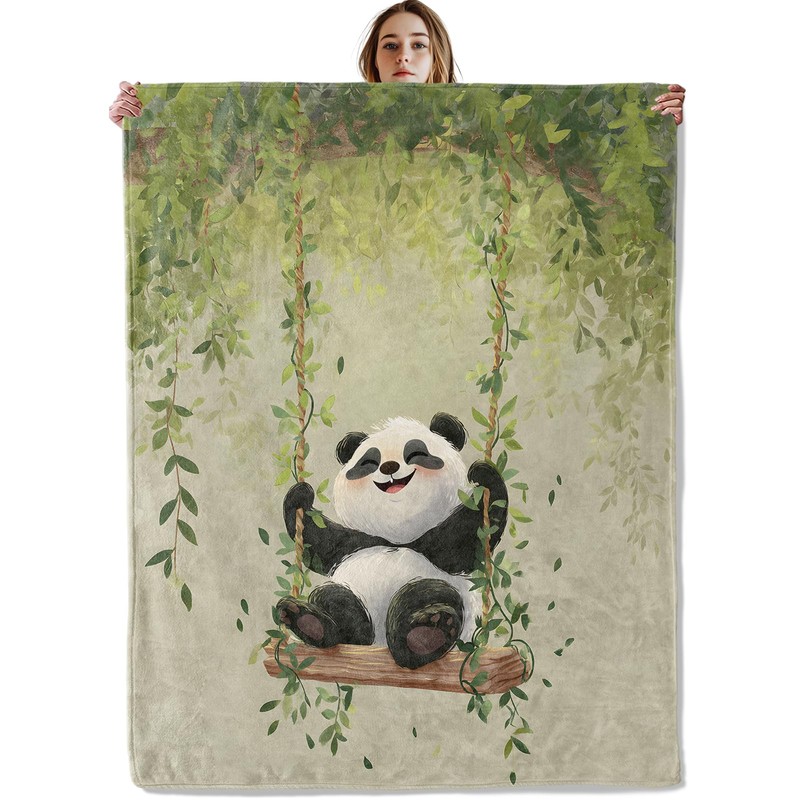 VOPNXLT Cute Panda Blanket, Soft Cozy Lightweight Happy Cartoon Pandas on Swing Throw Blanket for Women Girls Kids, Adorable Animal Sofa Couch Bed 50x60 Inch Flannel Blankets for Travel Decor Gifts