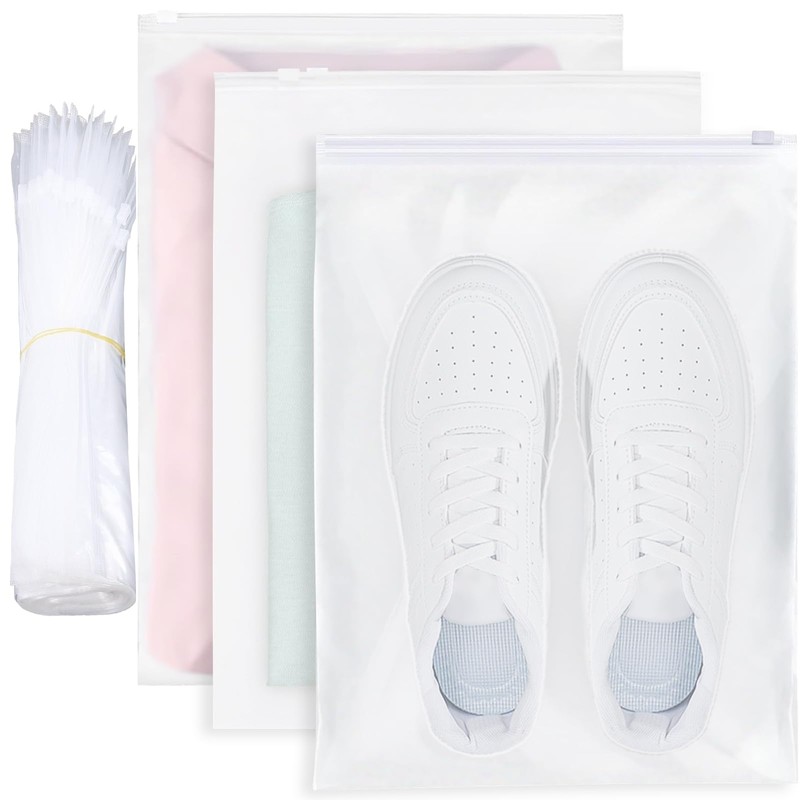 VORHOT Pack of 50 Large Zip Bags, 40 x 30 cm, Plastic Frosted Zip Bags, Reusable with Ventilation Holes for Clothes, Cosmetics, Travel Storage, Home Organisation