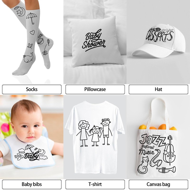 - Unlimited creativity: with our black fabric colouring pens, the creative possibilities are endless. Express your personality on a variety of fabric surfaces including cotton, linen or polyester. Whether you are designing a personalised gift or DIY project or want to add a unique design touch to an outfit, these colouring pens can let your imagination run wild