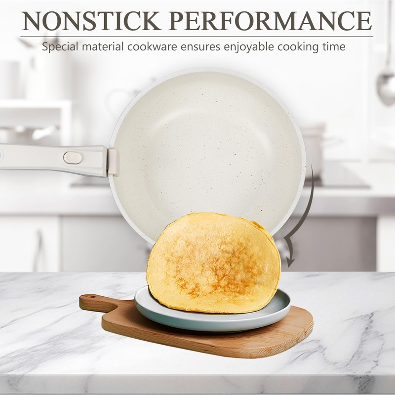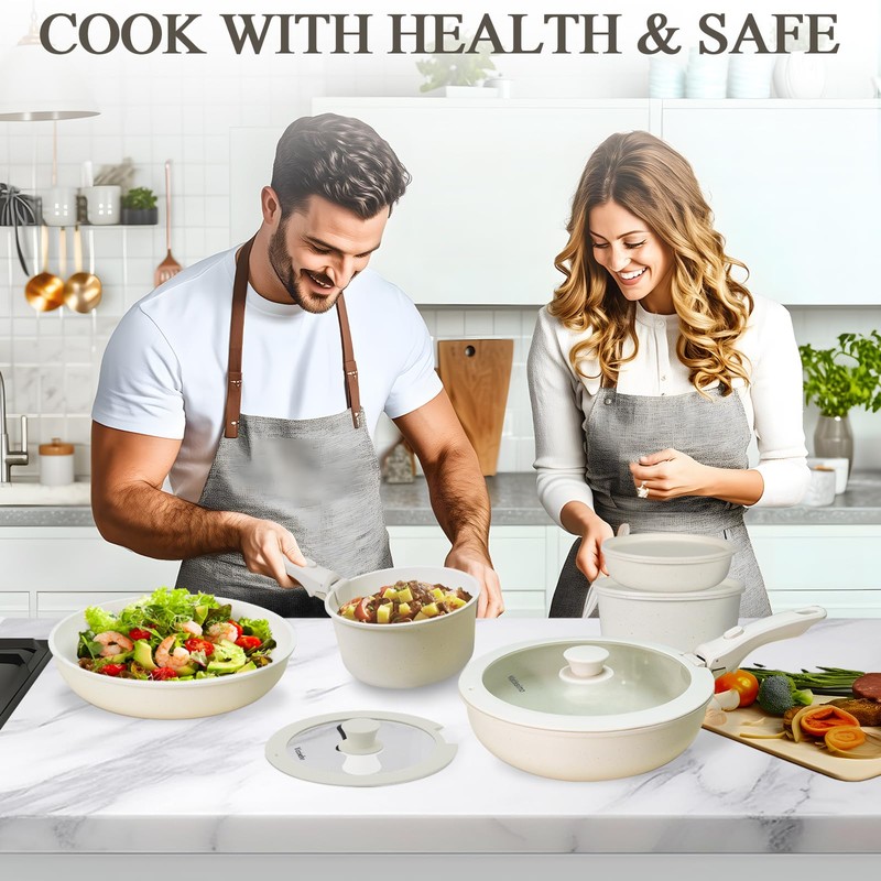 Vorisebo 11 PCS Pots and Pans Set Non Stick Dishwasher Safe, Non-Toxic Cookwares Set, Induction Pots and Pans for Oven Safe, Kitchen Pan Set with Removable Handle, Cream White