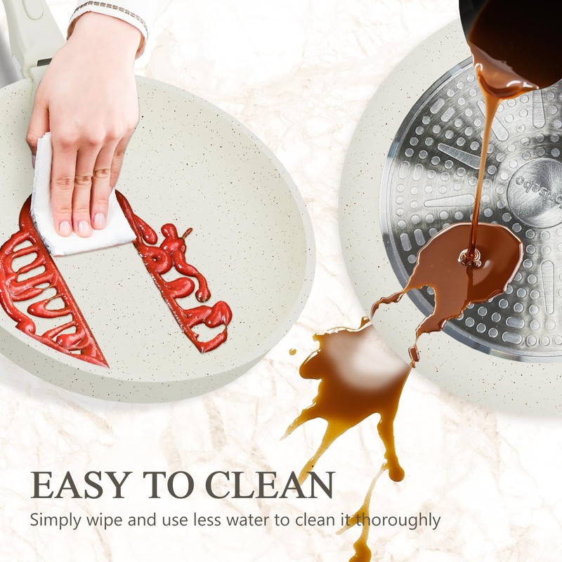 • [DISHWASHER SAFE]:The kitchen cookware sets have the option to be hand washed or put in the dishwasher. The pot sets for cooking nonstick simplifies the cleaning process, a simple rinse or a quick wipe will thoroughly clean and get out all the residue, ensuring your cookware is always clean and hygienic. PLEASE NOTE: When cleaning, please remove the handles for separate cleaning.