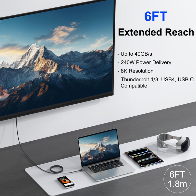 VoroDcip Thunderbolt 4 Cable 6FT, USB 4 Cable [40Gbps Data Sync/8K Display/240W Fast Charging] Compatible with Thunderbolt4/3, Mac mini, MacBook, iPhone16/15, SSD, Dock Station, Monitor