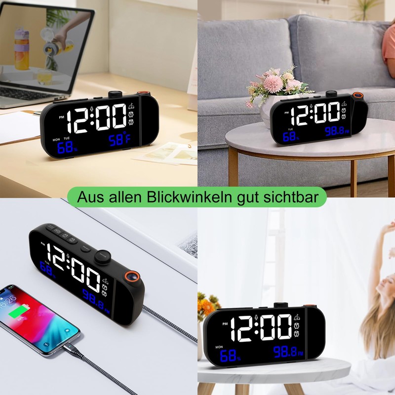 - Projection clock - Temperature and humidity display, this digital projection alarm clock with humidity monitoring and thermometer allows you to stay up to date with changes in indoor temperature and humidity.
