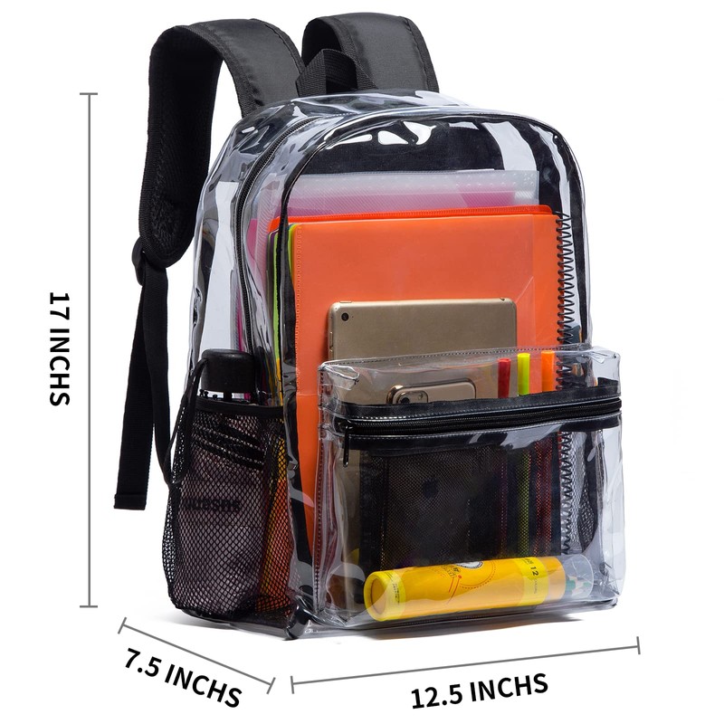 - Multipurpose Use: You can use this see-through backpack for multi-occasions such as colleges, workplaces, sporting events, concerts, camping, beaches, airports, and travel. It's roomy enough to store all the necessities