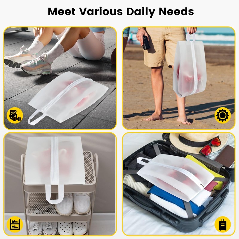 - See-through design saves time: The transparent shoe bag design lets you quickly identify contents - no more unzipping to find your shoe storage bag items. Great for shoe organizer bags at home or away