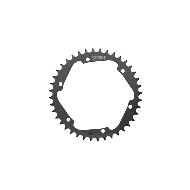 • Vortex rear steel sprockets are made from carbon steel and are electro-plated satin black to resist corrosion.