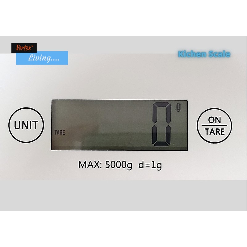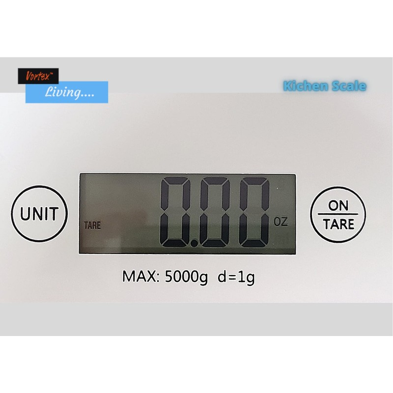 Vortex K7912 Touch button Tare function 9/IL: Oz/oz/ml LCD screen High precision strain gauge sensor system Tempered glass platform 5kg Electronic Kitchen Scale