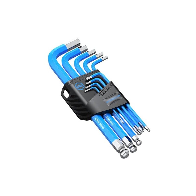 VORXEON 9PCS Allen Wrench Hex Key Set 1.5mm-10mm, Metric Long Ball End Allen Key Set L-Key with Visible Coding for Bike Motorcycle Repair Furniture Assembly Household DIY