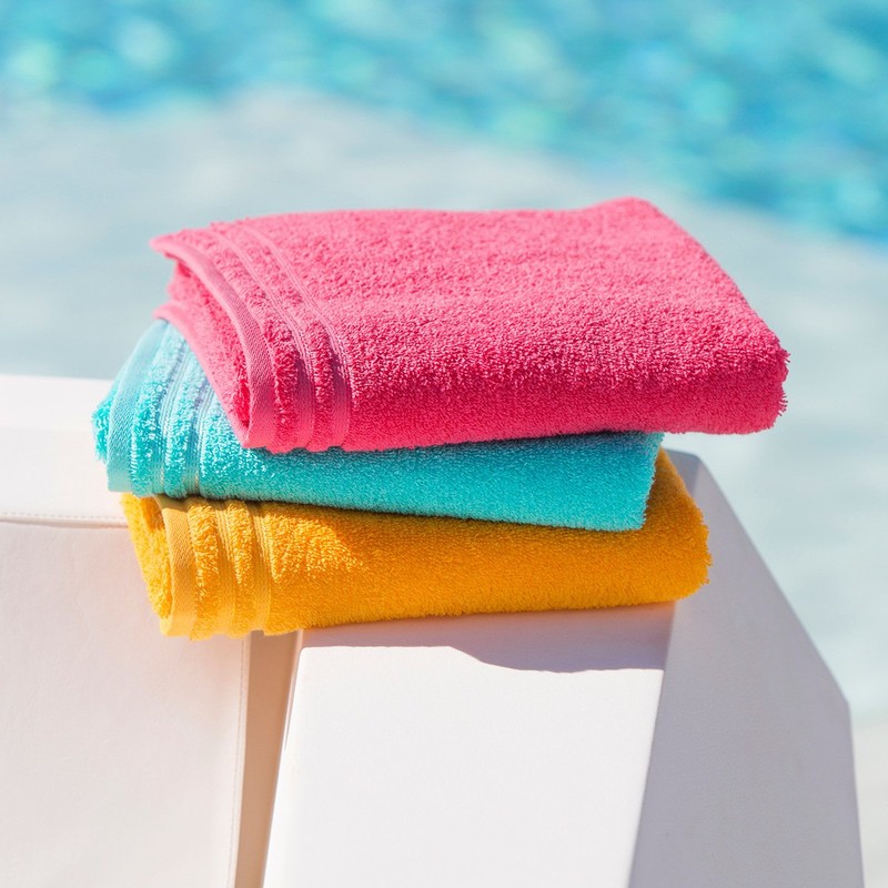 The new Vossen full terry bath towel from the Calypso series will inspire you with cheerful moods. The bright colours will transform your bathroom to a Caribbean island, to an oasis of pure zest for life. Enjoy the luxurious feel of this extremely voluminous and absorbent towel! Long lasting premium quality made of 100% super combed cotton. Washable at 60 °C and suitable for tumble drying. Names can be embroidered on request.