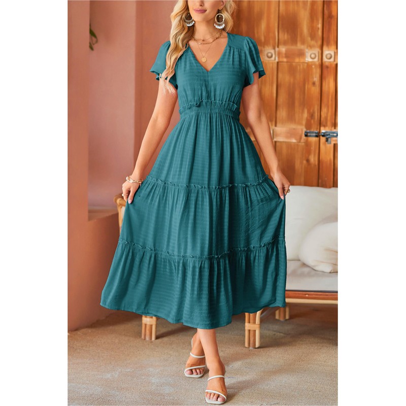 - UNIQUE DESIGN: This summer dresses for women 2025 features ruffle sleeve and v neck, flattering boho style, long tiered hem and elastic waist that greatly hide belly fat, fit any body shape