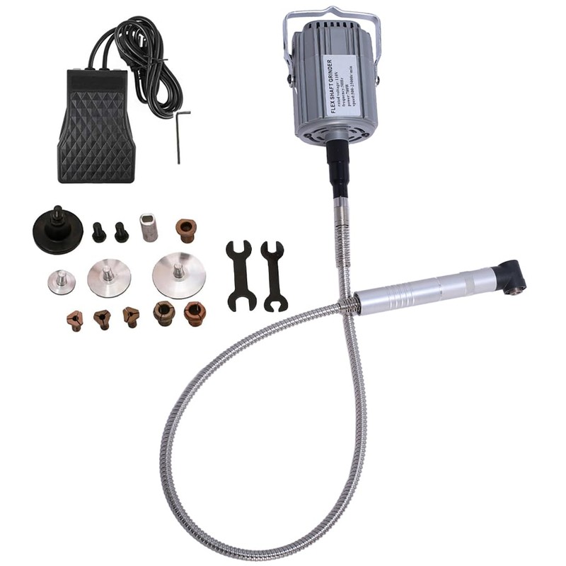 - A flexible shaft is included so that you can use a bit on an object and leave your other hand free to turn the object as you work.
