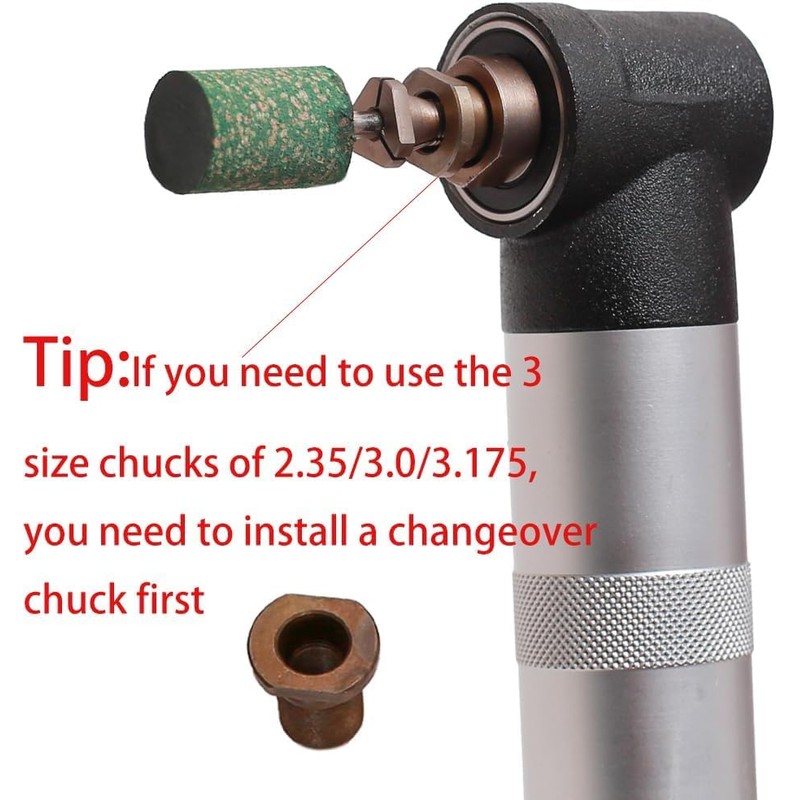 - Simple Acccessory Changes & Pratical Various 5 Chucks: Collet accommodates diameter: 2.35/3.0/3.175/6/6.35" grinding heads or shaft to securely clamp different sizes of bits.