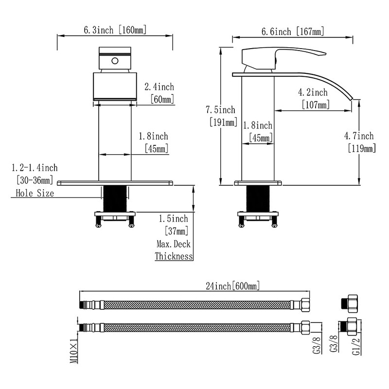 - √ ACCESSORIES INCLUDED - Pop up drain not included, 6" deck plate included for one or three holes 4 inch center sink installation. Two flexible Hoses With CUPC certification(Hot and cold) and 3/8" female compression thread with 1/2" adapters included for easy install.