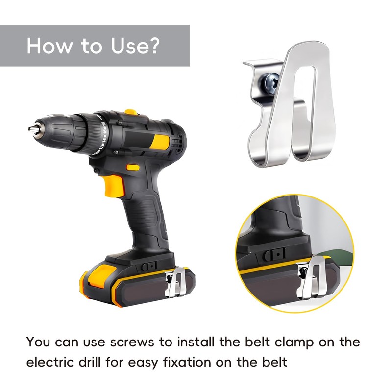 - Packaging Included: The package includes 4 stainless steel tool belt clips, each equipped with screws for secure attachment.