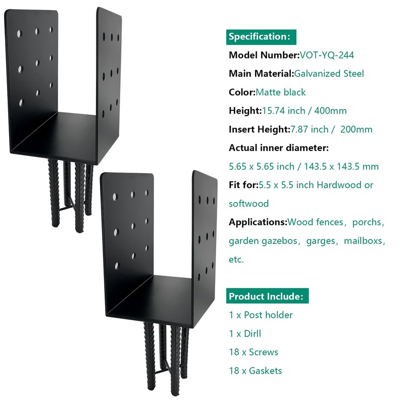 Our post holder are made of high quality galvanized steel,covered by Black powder coating,with good anti-corrosion and anti-rust ability,matte black appearance,fashionable and beautiful