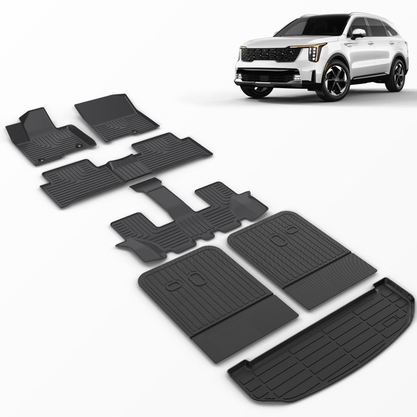 - 【Customized Floor Mats】:VOUKIY Floor Mats & Backrest Mats & Cargo Liner fit for 2025 Kia Sorento Hybrid 2024 Kia Sorento Hybrid 2023 Kia Sorento Hybrid 2022 Kia Sorento Hybrid 2021 Kia Sorento Hybrid 6/7 Seat,Not fit hybrid.The 3D laser scans accurately,No stuck throttle and brake, no stuck front seat track. The custom fit edge to edge and strengthened lip designed stop spills and any other liquid.Fastened to the original car by the buckle,Please remove old car mats before installing new floor liners