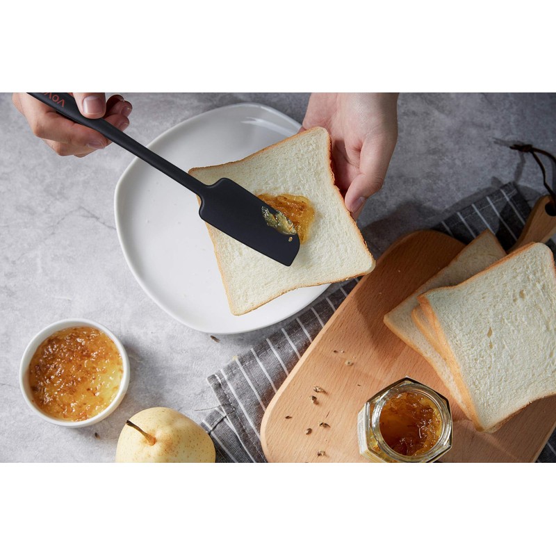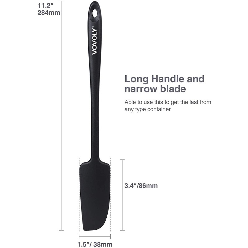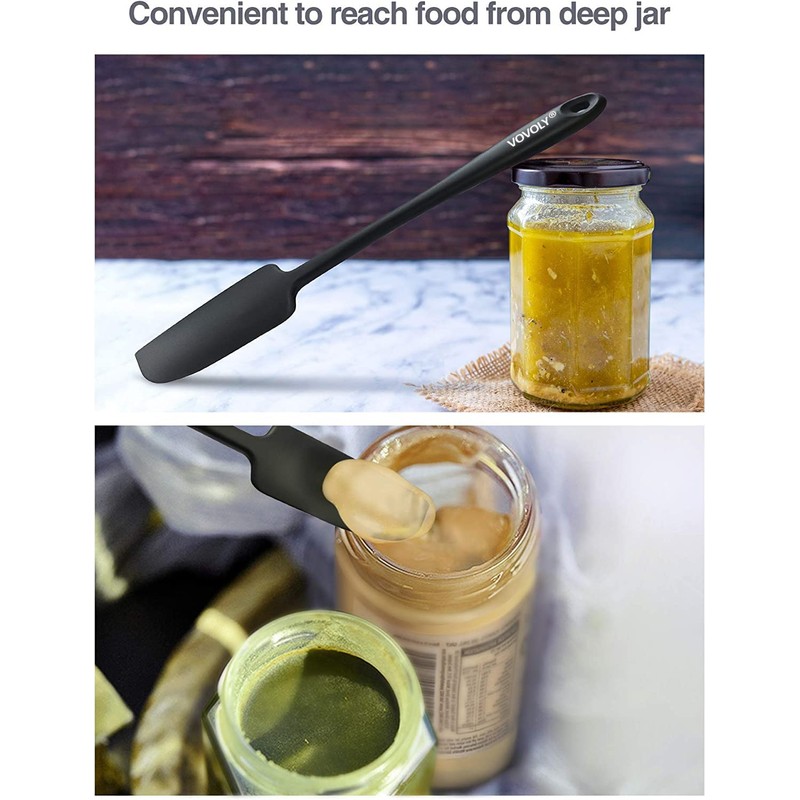 Vovoly Silicone Jar Spatula, Small Rubber Scraper, Spatulas Silicone Heat Resistant, Seamless,Non StIck Cookware 11.2 Inch, Black.
