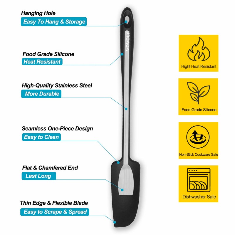 - HEAT-RESISTANT - Our rubber spatulas are made of food grade silicone, BPA free, won't discolor, warp, or melt, perfect for use with hot foods and around the cook top and dishwasher safe.