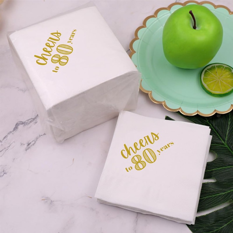 - Brinda a 80: celebra con Cheers To 80 Years servilletas de cóctel para un hito memorable.