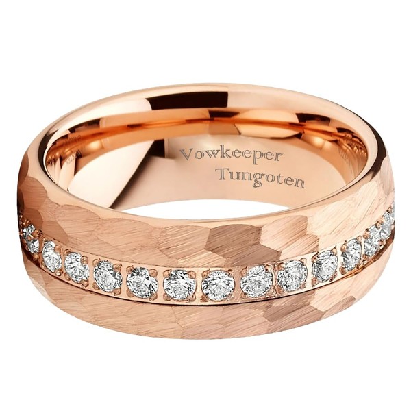 VowKeeper 8mm Titanium Men's Wedding Ring - Rose Gold, Diamond Inlay, Hammered Design, Lightweight Comfort Fit Sizes 10