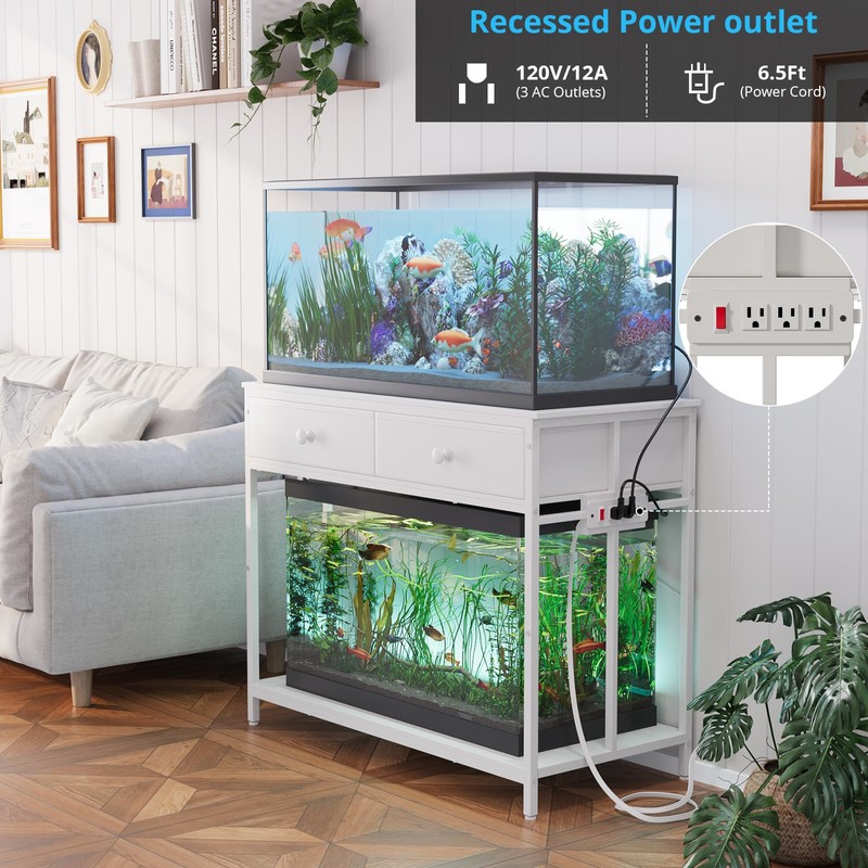 - Useful Power Outlets: The 40 gallon fish tank stand comes integrated with 3 AC power outlets, which provides convenience for heater rods, filters, LED lights, and other devices, avoiding cluttered wires, and simplifying your fish tank management