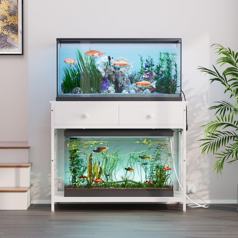 - Ample Storage Space: Our fish tank stand is equipped with two drawers, providing ample storage for your fish food, cleaning tools etc. The removable and foldable drawers allow for easy access to items stored inside. More flexibility for your storage