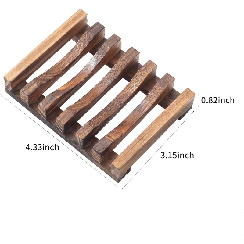 - Handcrafted : Hand Natural Craft; Each rectangular wood soap dish for shower is unique; perfect charcoal colorare; the soap dishes for bar soap size in 4.33 inch*3.15 inch*0.82 inch; lightweight and compact; the soap dish is good for travel and family