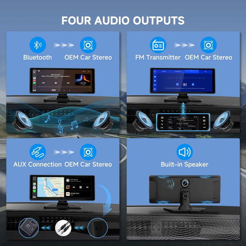 - Smarter, Hands-Free Control: Stay focused on the road with advanced voice control. Easily make calls, send messages, play music, and get directions using just your voice. Our portable CarPlay screen brings convenience and safety to every journey.